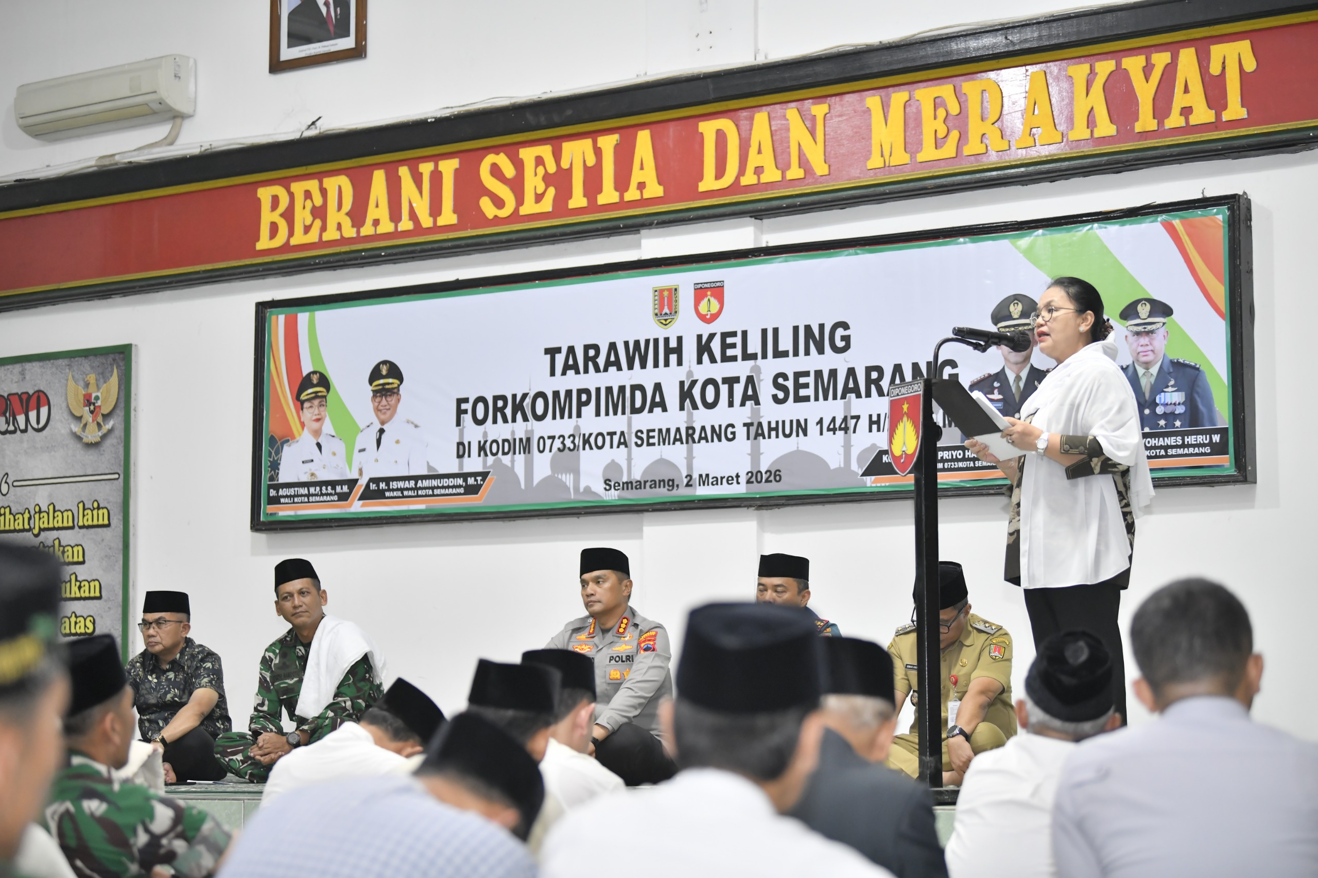 FOLKSTIME.ID – Pemerintah Kota atau Pemkot Semarang bersama Forum Komunikasi Pimpinan Daerah (Forkopimda) kembali menggelar Tarawih Keliling (Tarling) ke-4 Ramadan 1447 H, Senin (2/3/2026) malam, di Aula Sudirman Kodim 0733/Kota Semarang, Jalan Pemuda.